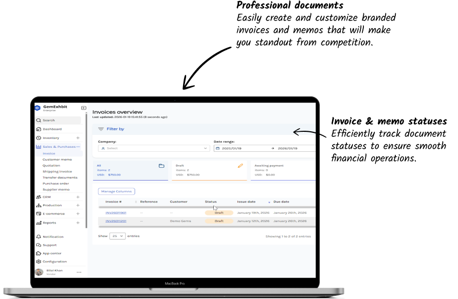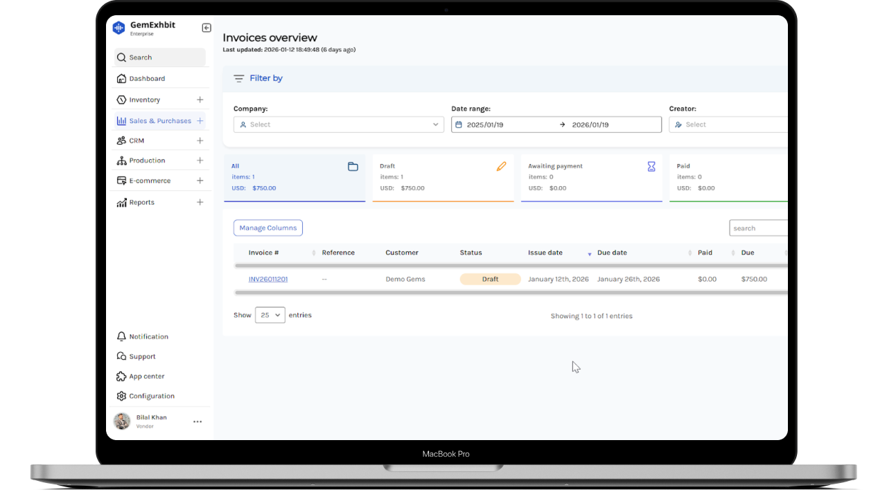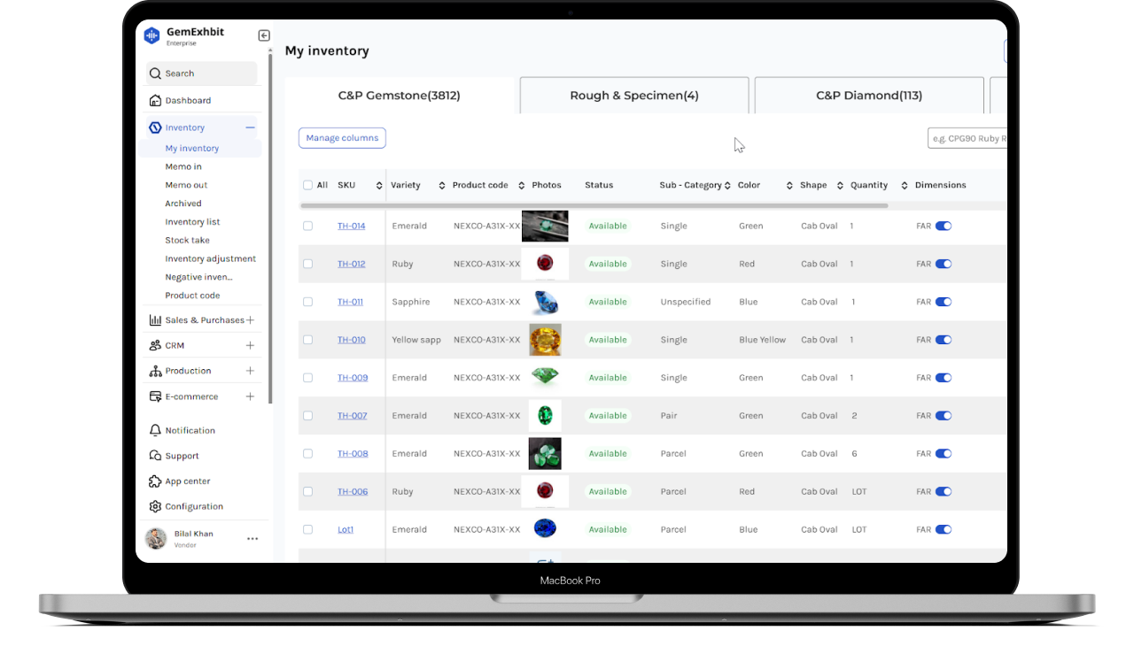 Run your entire gemstone operation from one powerful platform. GemExhibit Enterprise is designed for gemstone traders, manufacturers, and exhibitors who want complete control over inventory, sales, accounting, and customer relationships anytime, anywhere.