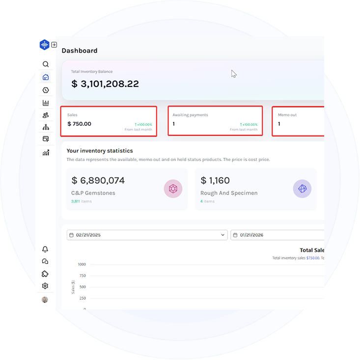 Track all sales, purchases, and expenses in one centralized system. GemExhibit Enterprise ensures that every transaction is recorded accurately and linked directly to inventory and customers. This gives you a clear financial picture at all times, without switching between multiple tools.