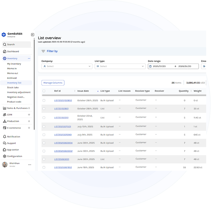 GemExhibit Enterprise is purpose built for the gemstone industry. Every feature is designed to support real world manufacturing, trading, and inventory workflows so you can operate efficiently at every stage of your business. From raw stones to finished pieces, GemExhibit Enterprise gives you complete visibility and control.
