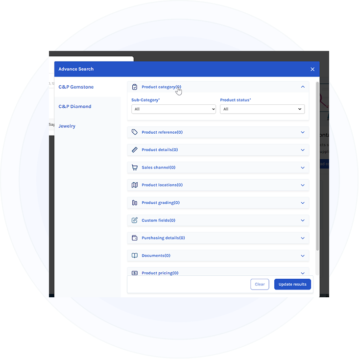 Locate items instantly using intelligent filters and search tools designed for complex gemstone inventories.
