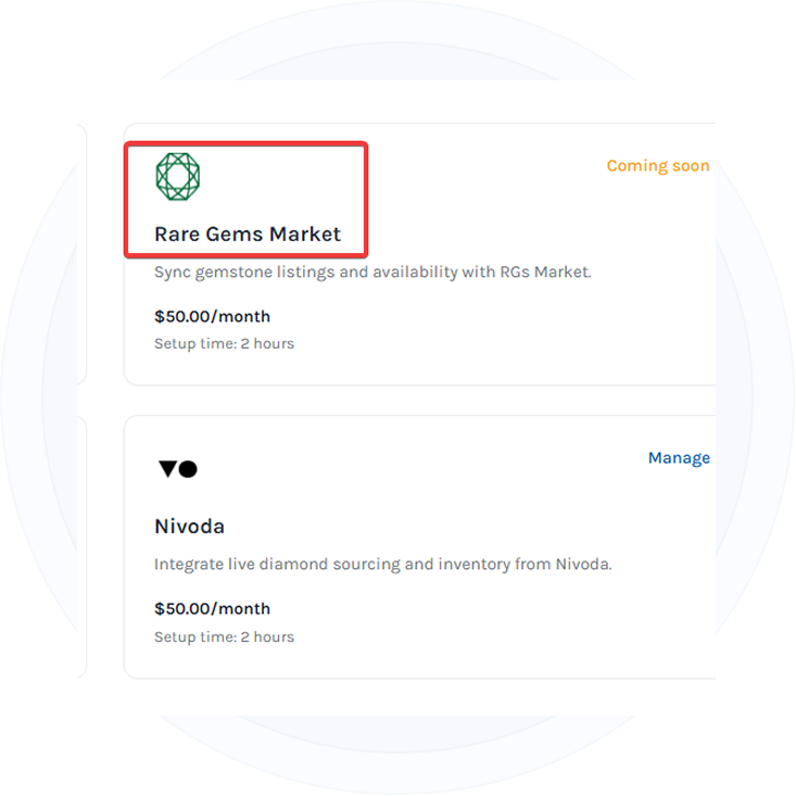 Sell directly on Rare Gems Market, our own dedicated marketplace built for gemstone professionals. Reach qualified buyers while keeping your inventory fully connected to your ERP.