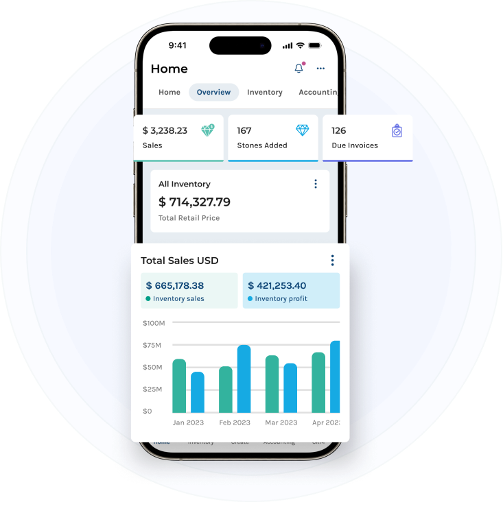 All data is securely synchronized with GemExhibit Enterprise. Updates made on the app are reflected instantly across inventory, sales, and accounting. Your business stays consistent and protected at all times.
